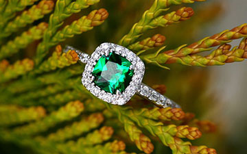 祖母绿的颜色十分诱人,有人用菠菜绿、葱心绿、嫩树芽绿来形容它,但都无法准确表达它的颜色。它绿中带点黄,又似乎带点蓝,就连光谱都好象缺失了点波长。确实,没有一种天然颜色令人的眼睛如此舒服。每当你目不转睛地注视嫩绿的草坪和树叶的时候,那种赏心悦目的感觉可以想象,但与祖母绿的色泽相比就显得逊色了。它是能使人百看不厌的宝石之一。无论阴天还是晴天,无论人工光源还是自然光源下,它总是发出柔和而浓艳的光芒。这就是绿色宝石之王——祖母绿的魅力所。祖母绿是5月生辰石,象征着幸运、幸福,佩戴它会给人带来一生的平安。它也是结婚55周年的纪念石。